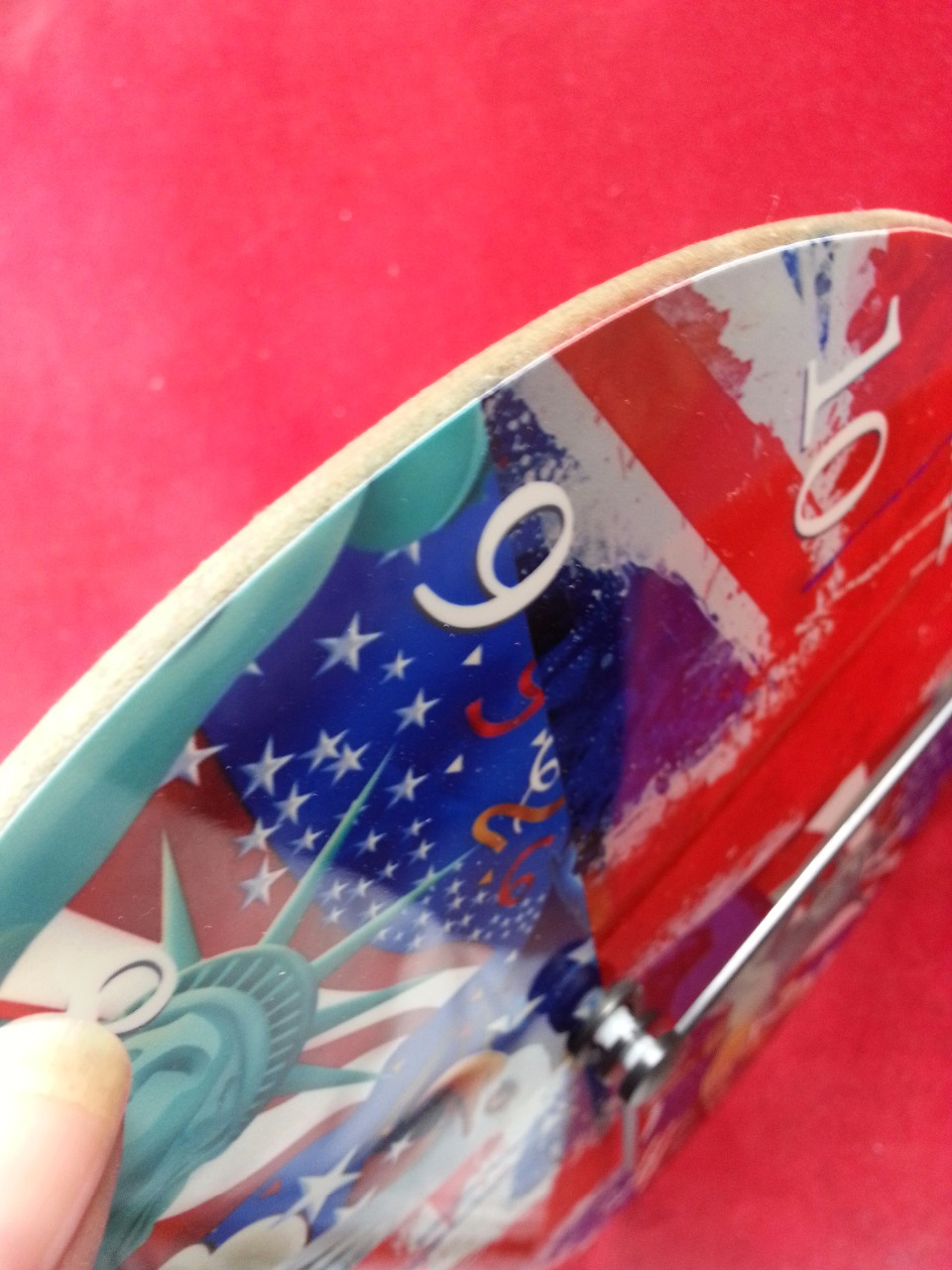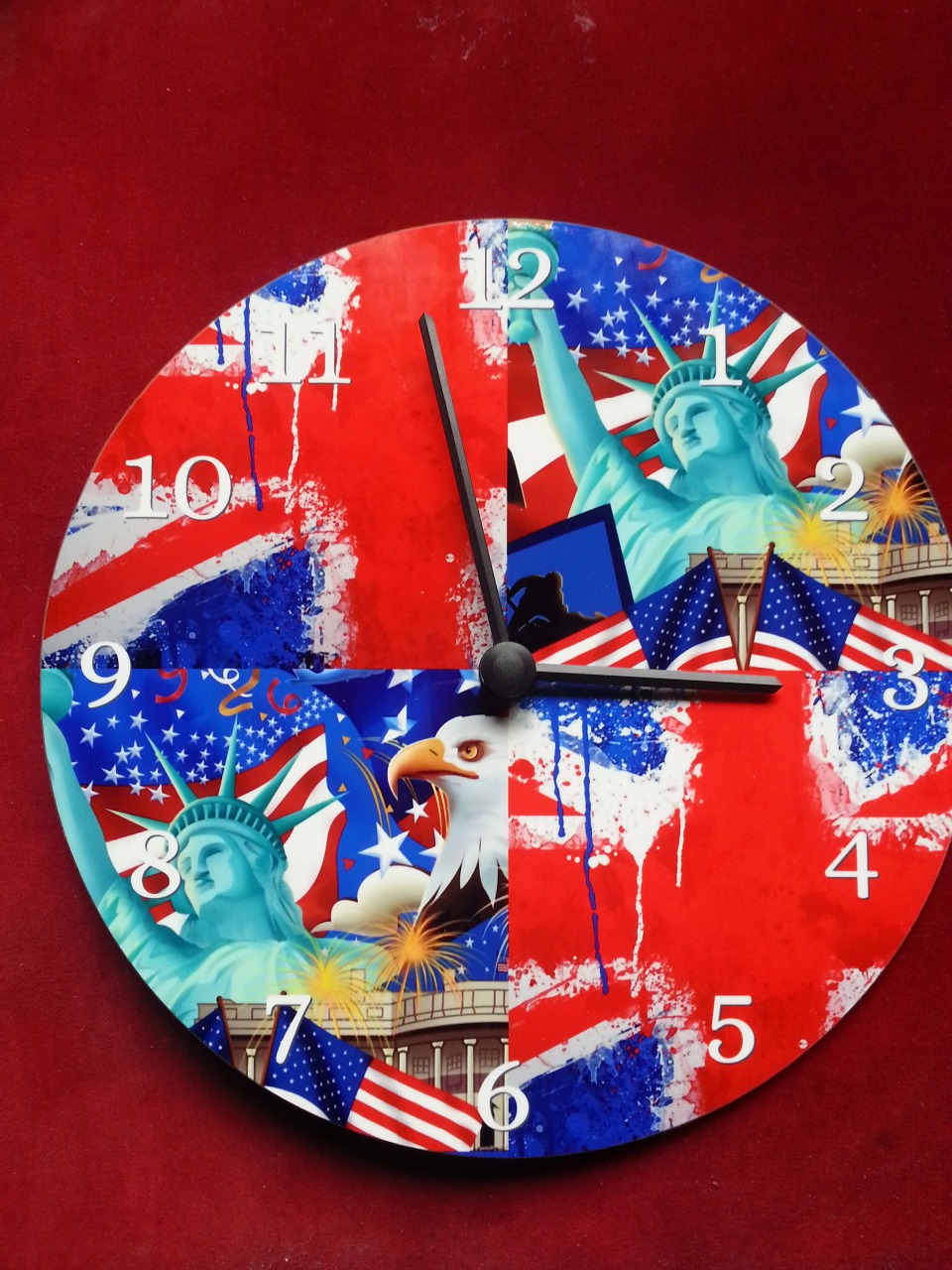 Die Uhr die wir uns ausgesucht haben ist ein Mix aus England und USA was ich ja schon sagte,das Bild ist sauber auf der Uhr verarbeitet und hat keine ecken oder Kanten.